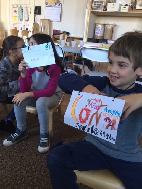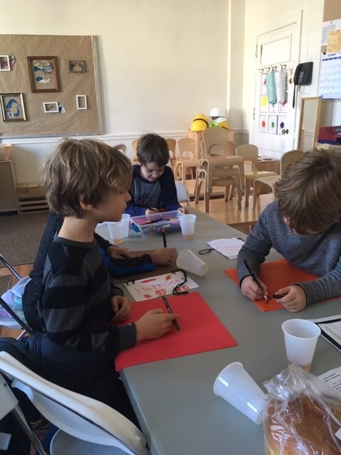 This week, students said the blessings for grape juice and challah all together as a group for the first time, instead of call and response style. Yay! After snack and Hebrew Through Movement, students had a thoughtful conversation about L’dor Vador (from generation to generation). We talked about things that have been passed down in our own families. Names, jewelry, and stuffed animals were all mentioned, but as a group, we realized that the most important things being passed down are stories and love. We reinforced this by reading the book Something From Nothing and The Keeping Quilt.