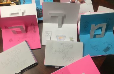 Michal and her classes made sun catchers and and postcards to celebrate Israel turning 71 this year. The postcards are made from a collage style by using small photos of Israeli landscapes reassembled to create a new image.