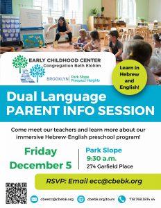 Want to talk with a parent who’s experienced our Dual Language Program in action? Reach out to Jaci Israel, Director of Early Childhood Education, at ecc@cbebk.org to learn more.